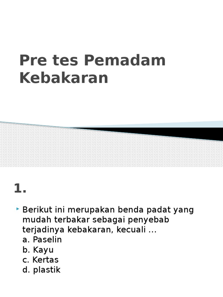 Soal Soal K3 Rs from image.slidesharecdn.com Tes ada 19 soal dan ini terbilang mudah. Mobil pemadam kebakaranpetugas pemadam kebakaran bahasa inggrisdinas kebakaran. Jumlah keseluruhannya adalah 90 butir soal pilihan ganda. Pada postingan soal tes perangkat desa kali ini memprediksi 50 soal perangkat desa. Contoh soal pertanyaan dan jawaban tes psikotes untuk masuk indomaret, harus bahkan wajib anda fahami untuk persiapan menghadapi seleksi, karena untuk masuk indomaret tidak hanya diajukan pertanyaan melalui tes soal saja, melainkan ada wawancara, interview dan tes fisik. Tes tertulis ini berkaitan dengan ilmu pengetahuan. Berikut ini , soal lks essay pai (pendidikan agama islam), kurikulum 2013, beserta kunci jawabannya, untuk siswa sma/smk/ma/mak/sederajat. Daftar soal tes pelatihan dasar penanggulangan bencana âbahaya kebakaranâ 1.