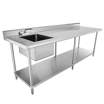 Stainless steel prep table with sink bowl commercial kitchen practical sink with adjustable feet, extra large drain bowl and stainless steel sink filter for restaurants etc 47x23.6x31.5inch $270.00 $ 270. A stainless steel prep table with sink helps your kitchen staff to perform their prep work safely and efficiently. Each stainless steel work bench is perfect for kitchens that need more counter space for food prep or for supporting countertop equipment like mixers, food warmers, and meat slicers. Some units come with backsplashes to protect your walls from splashes while your staff work throughout the day. 4.7 out of 5 stars. You can choose a stainless steel table with an open base, undershelves, or enclosed cabinets that will allow you to easily store larger equipment underneath. Complete your commercial kitchen's prep area with this regency 30 x 48 stainless steel work table with sink! Get it as soon as wed, feb 10. Not only does this unit provide plenty of room on its work surface, but it also offers an 18 gauge type 430. 4.7 out of 5 stars. Regency 30 x 96 16 gauge stainless steel work table with sink. Complete your commercial kitchen's prep area with this regency 30 x 60 stainless steel work table with sink! Stainless steel double bowl kitchen sink table.